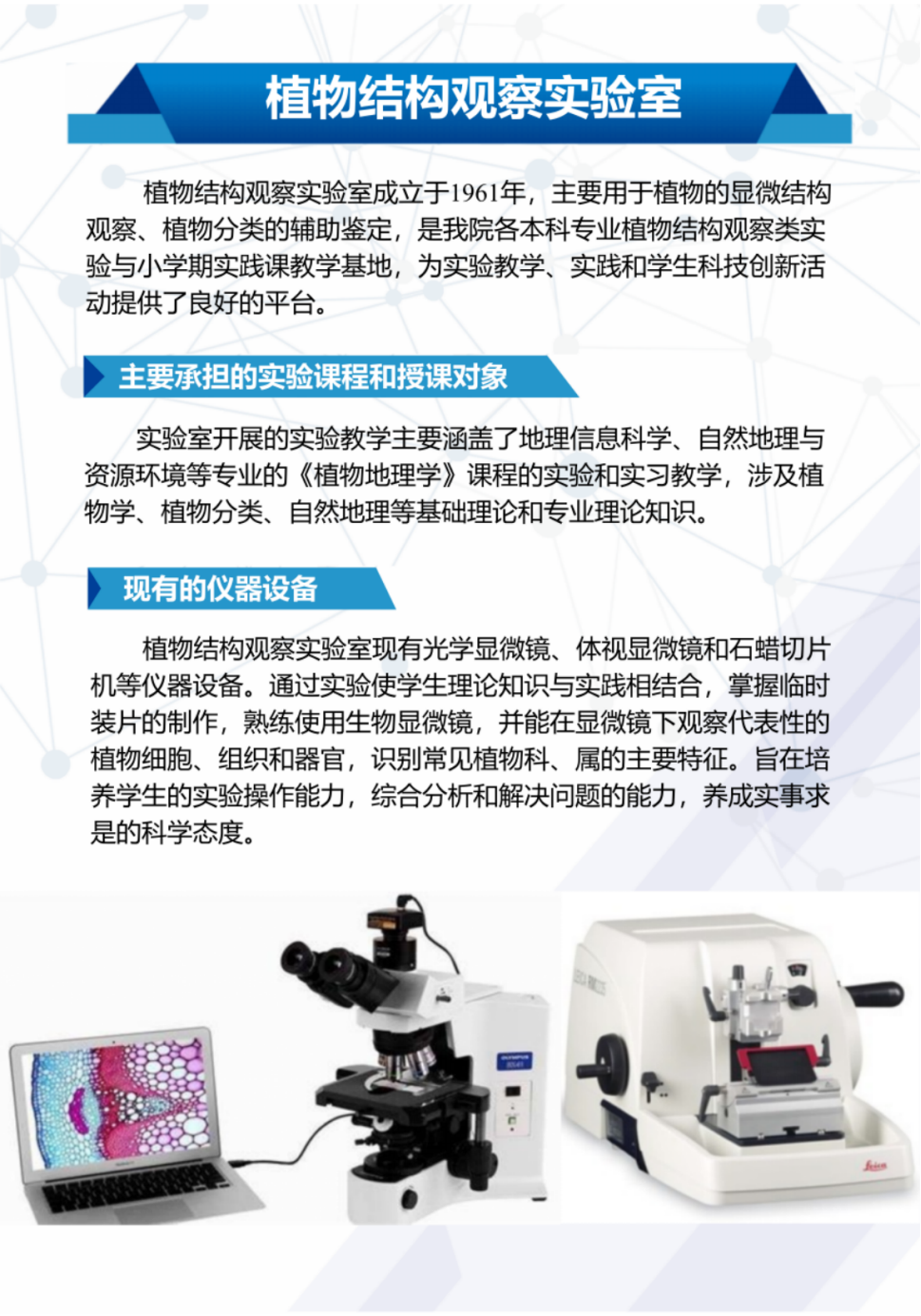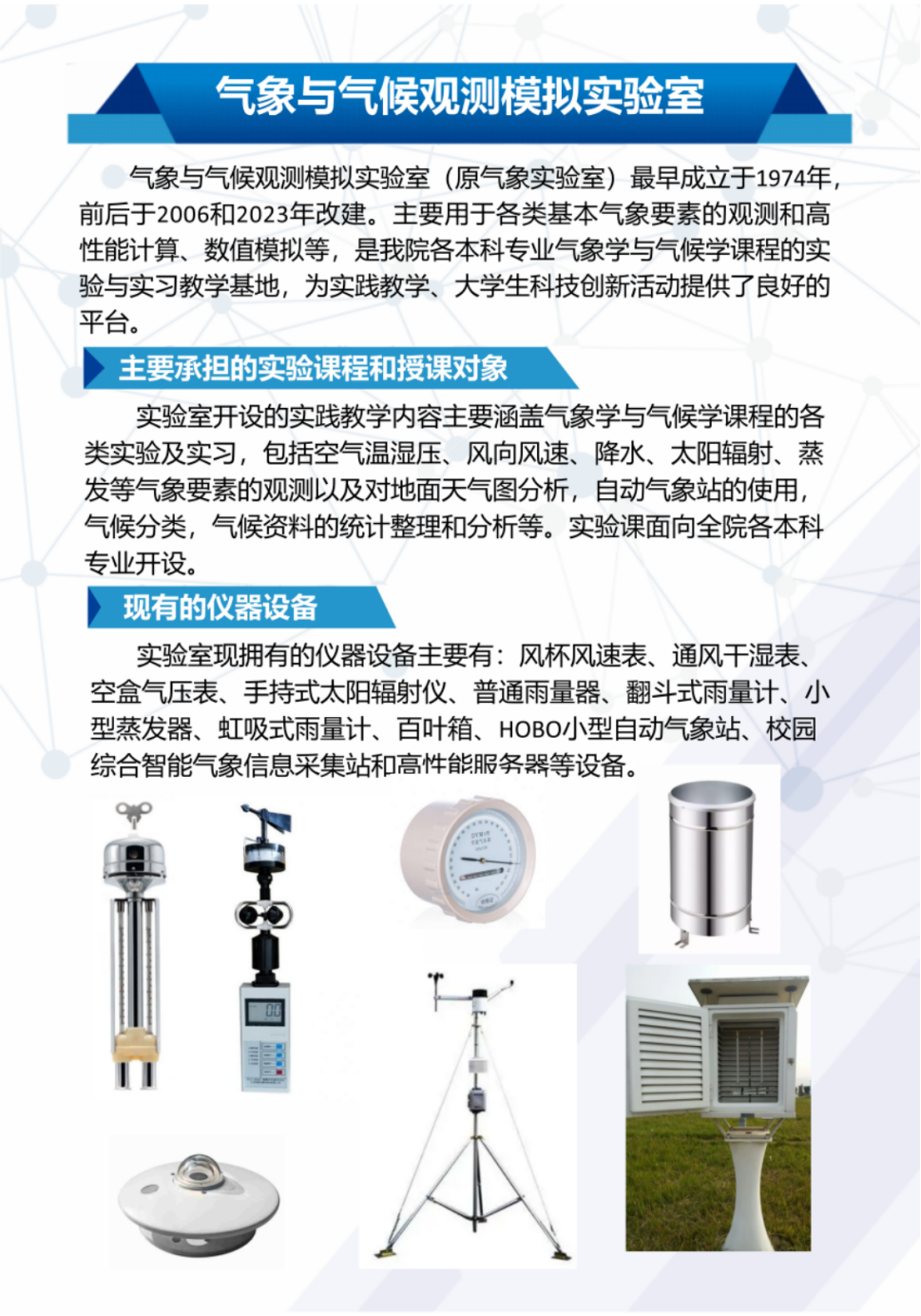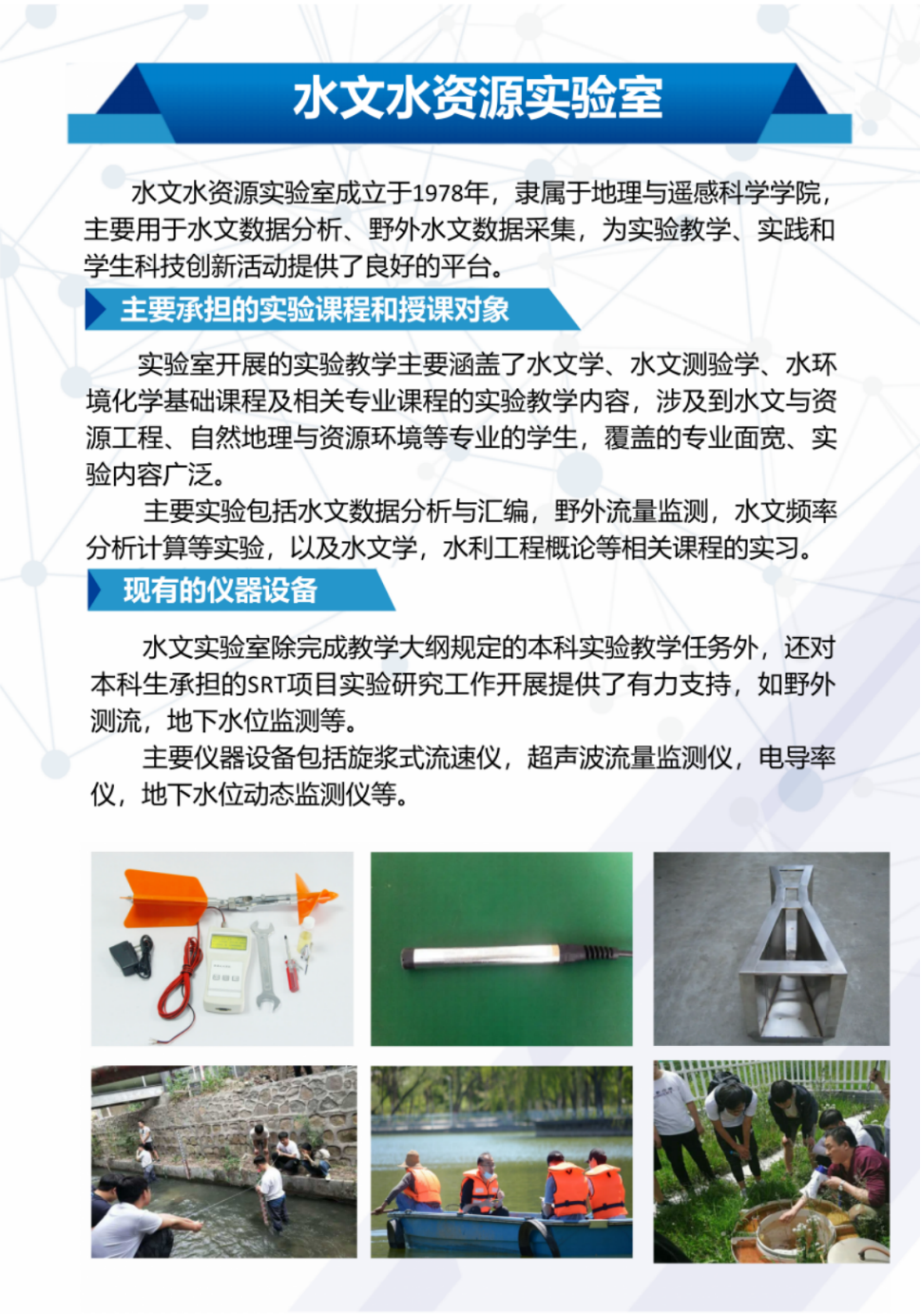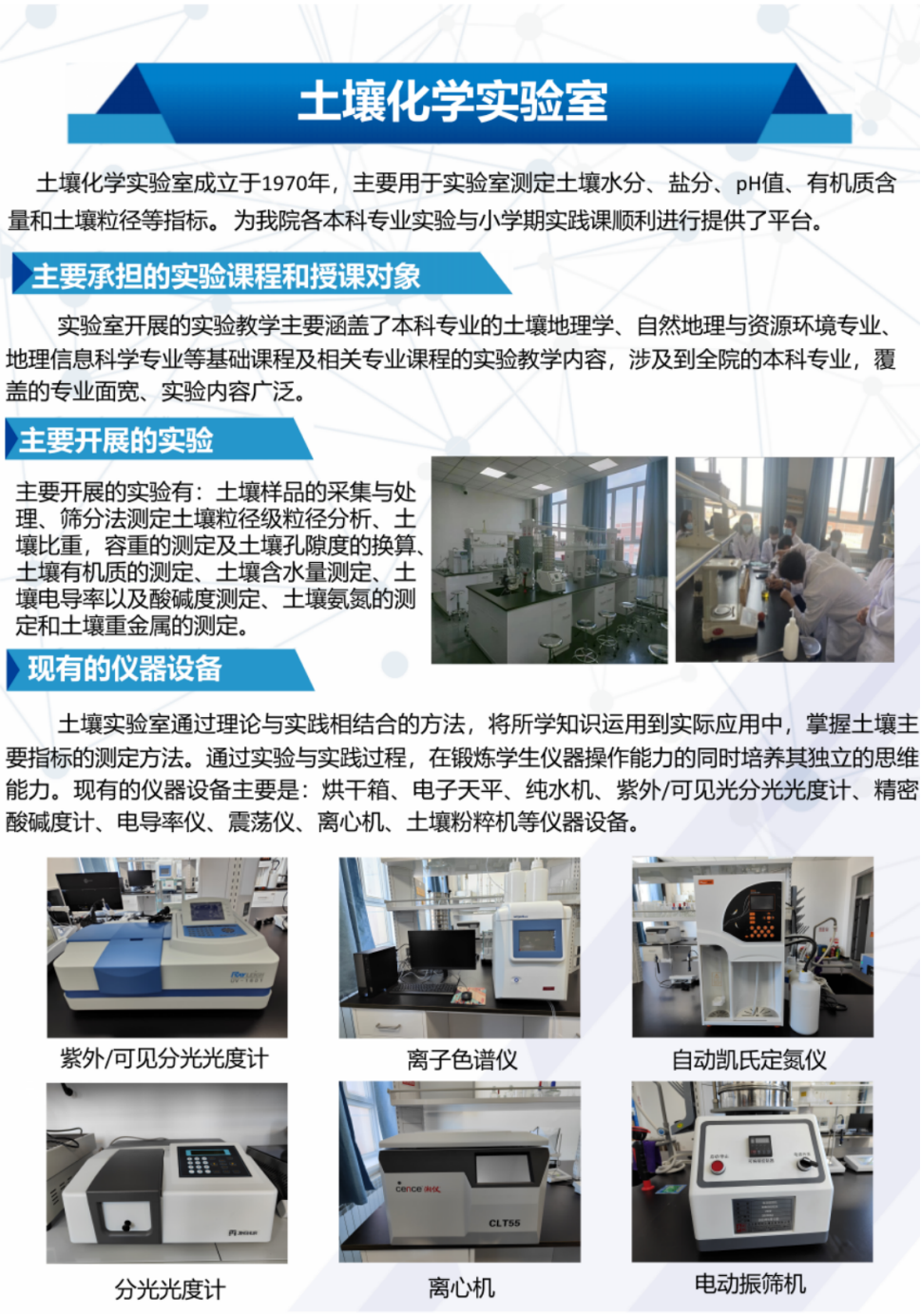 7 个本科专业提供实验支撑。涉及地理、水文、气象、土壤、生态、环境、规划等多个相关学科实验内容。