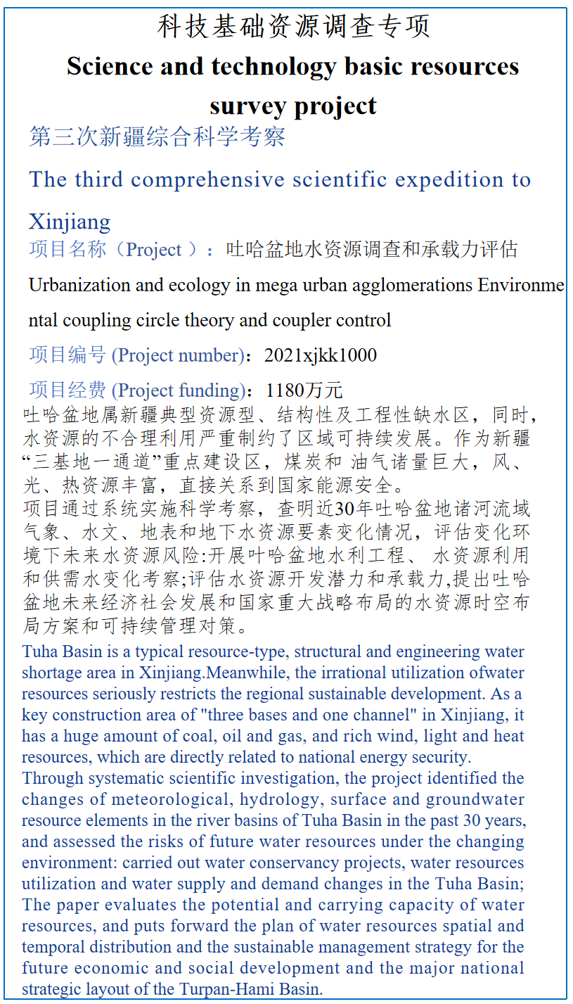 第三次新疆综合科学考察--吐哈盆地水资源调查和承载力评估